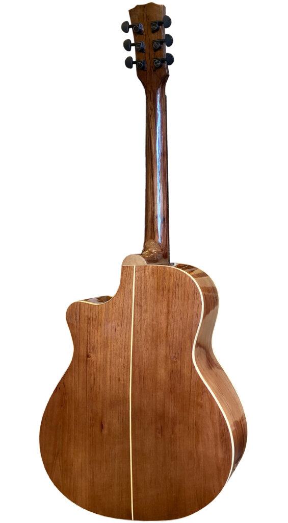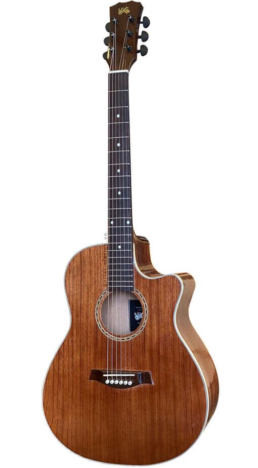 - Gỗ nguyên miếng 100%, từ mặt đến lưng hông và cần đàn đều là gỗ nguyên miếng già tuổi – solid nên vân gỗ đẹp và khít.